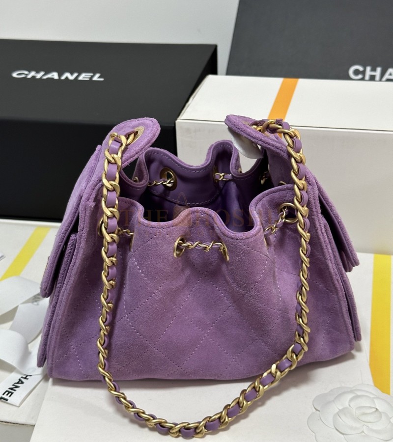 CHANEL 25C AS5631 HOBO DRAWSTRING BAG PURPLE SUDE LEATHER WITH GOLD CHAIN 22*12.5*20CM MASTER QUALITY