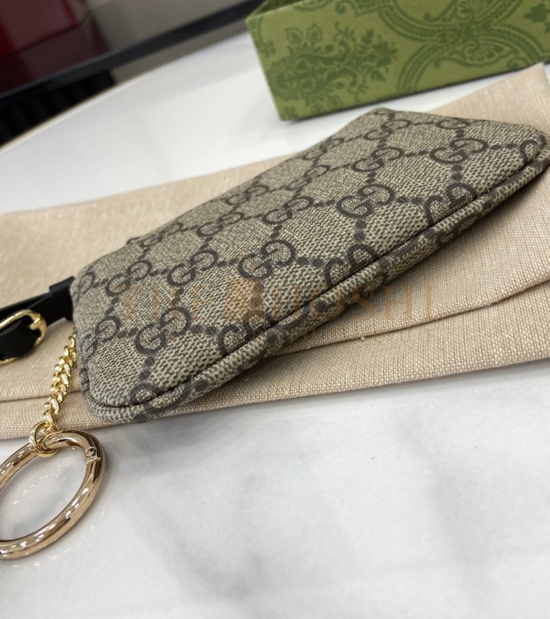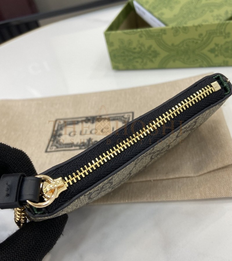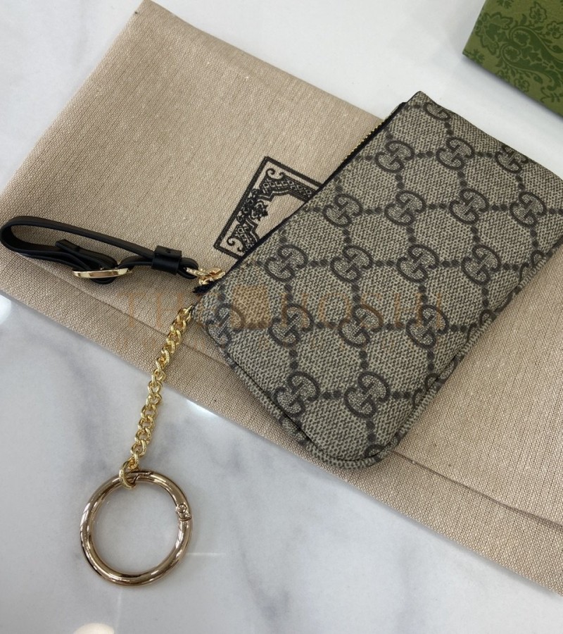 GUCCI GG EMBLEM WRISTLET CARD CASE BEIGE/BROWN CANVAS LEATHER 12X7.5CM MASTER QUALITY