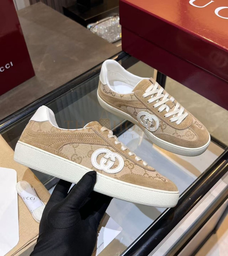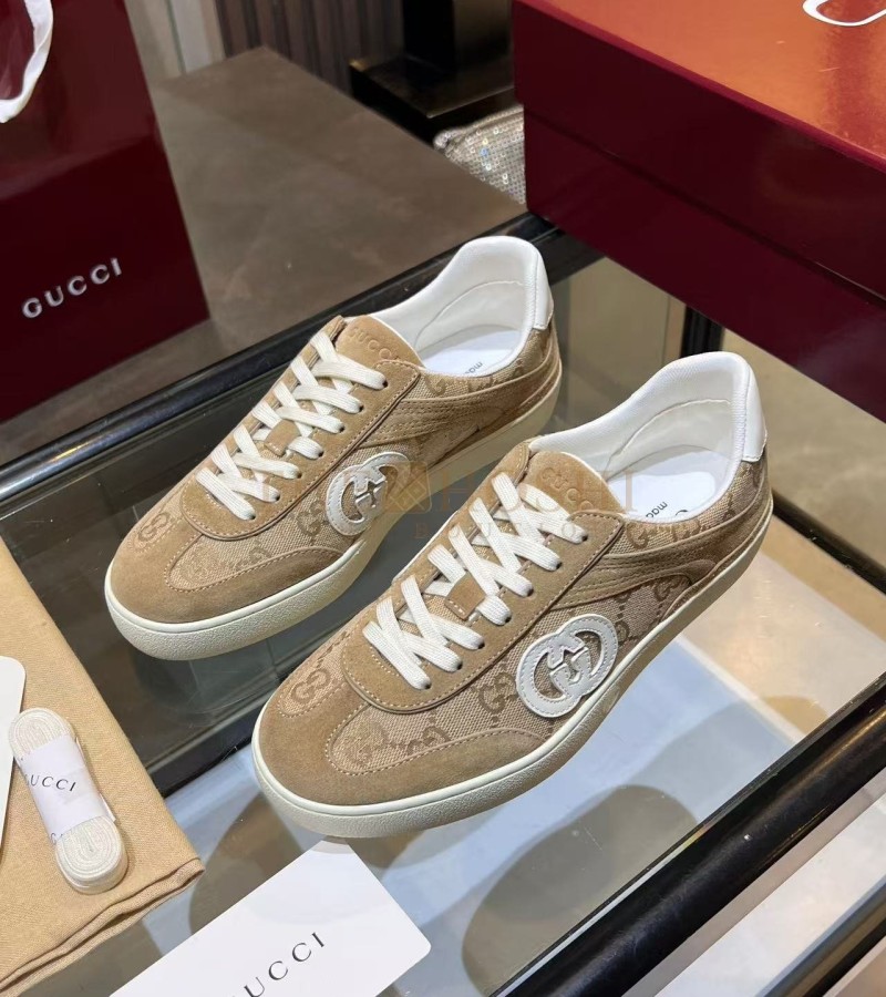 GUCCI SUEDE SHOES BROWN LOW-TOP SNEAKERS 3.5CM PLATFORM