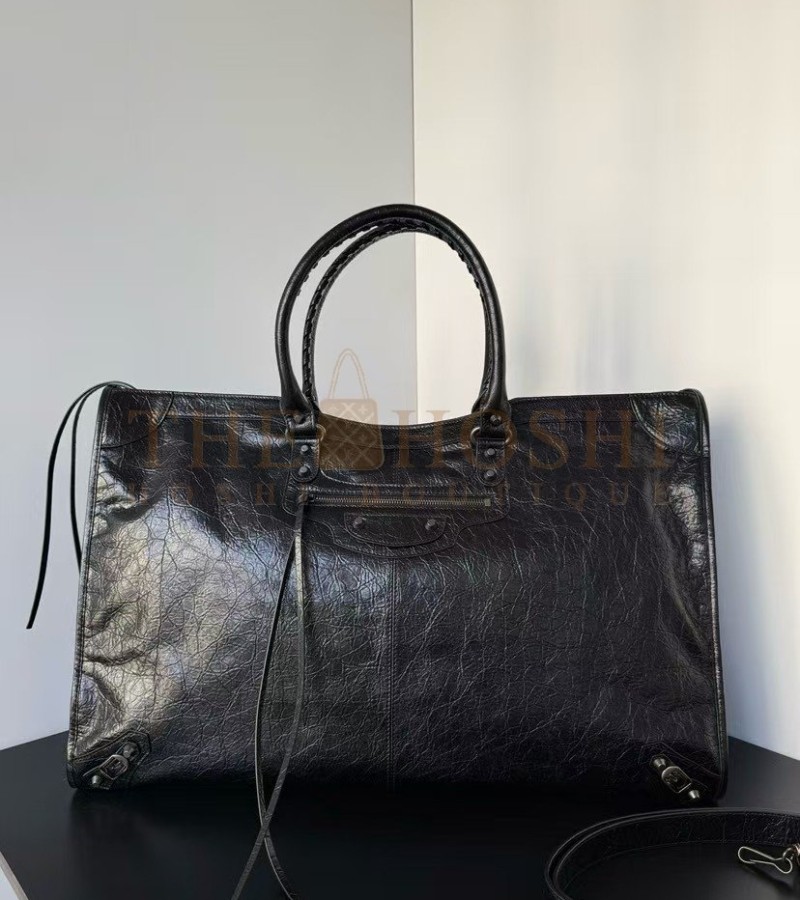 BALENCIAGA LE CITY TRAVEL TOTE BAG LAMBSKIN LEATHER BLACK SIZE 54.8×35×20CM