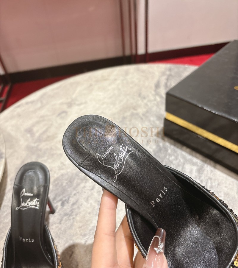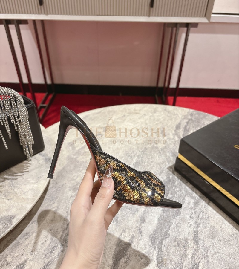 CHRISTIAN LOUBOUTIN CL POINTED-TOE HEELS GLOSSY CALFSKIN WITH LEOPARD SEQUINS BLACK SIZE WOMEN'S SIZE 34-42 HEEL 10CM MASTER QUALITY