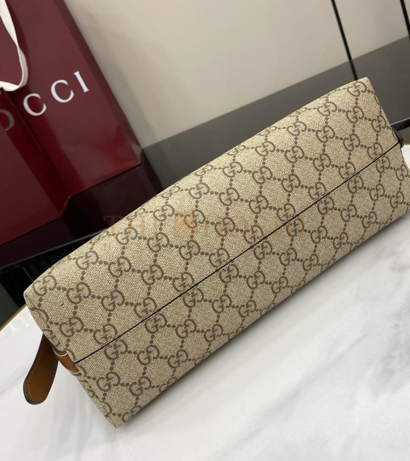 GUCCI GG EMBLEM FALL COLLECTION BEIGE EBONY GG CANVAS SHOULDER BAG 30×19×11CM MASTER QUALITY